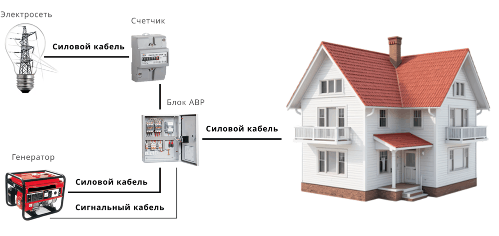 | Переключение | Автоматическое (через щит АВР) | Ручное (через реверсивный рубильник) |
